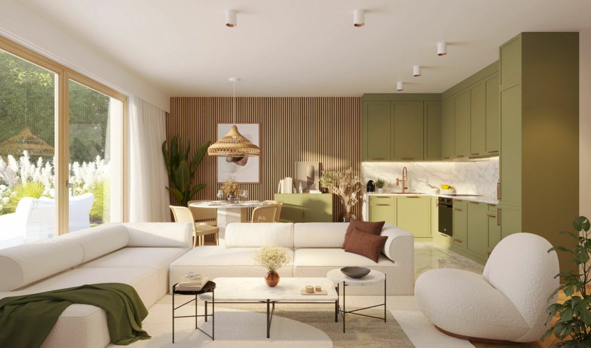 - Budynki charakteryzują się elewacją w naturalnych odcieniach beżu, ziemi i roślinności, co sprawia, że prezentują się stylowo przez cały rok.