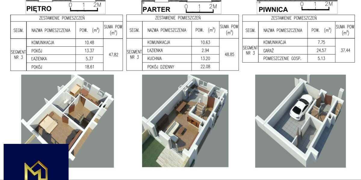 - 3-pokojowe (134,11m2) każde z ogrodem, garażem i dodatkowym miejscem postojowym zewnętrznym,