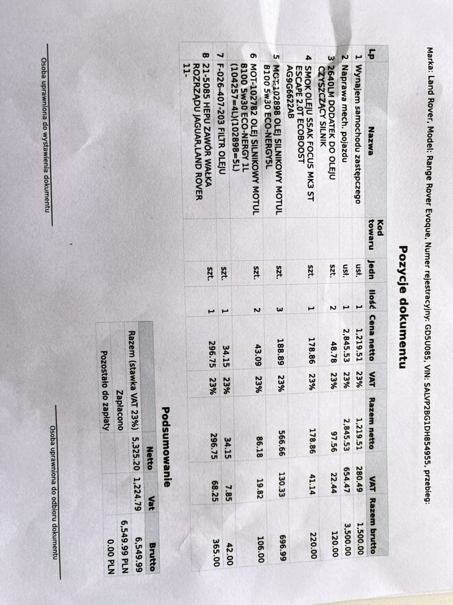 Dane do sprawdzenia historii: VIN: SALVP2BG1DH854955 Data 1 rejestracji 01.01.2013. Nr rej GD5U085.