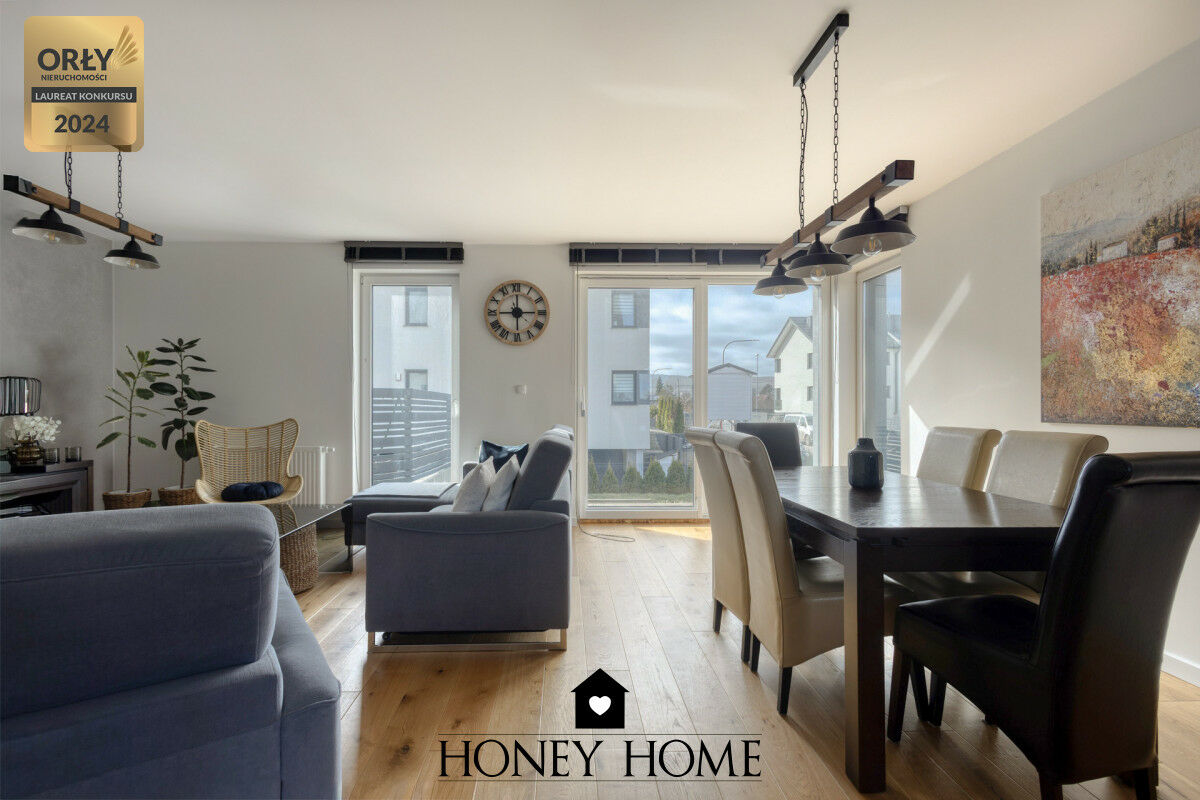 Przestronny dom szeregowy z ogrodem | wysoki standard | garaż | poddasze do aranżacjiNa sprzedaż komfortowy dom w zabudowie szeregowej położony na spokojnym i kameralnym osiedlu Żurawia Łąka w Rumi. Nieruchomość o powierzchni 145,54 m² wyróżnia się funkcjonalnym układem pomieszczeń, wysokim standardem wykończenia oraz prywatnym ogrodem o powierzchni około 120 m². To idealna propozycja dla rodzin poszukujących wygodnej przestrzeni do życia w spokojnej okolicy, z jednoczesnym dostępem do pełnej infrastruktury miasta.