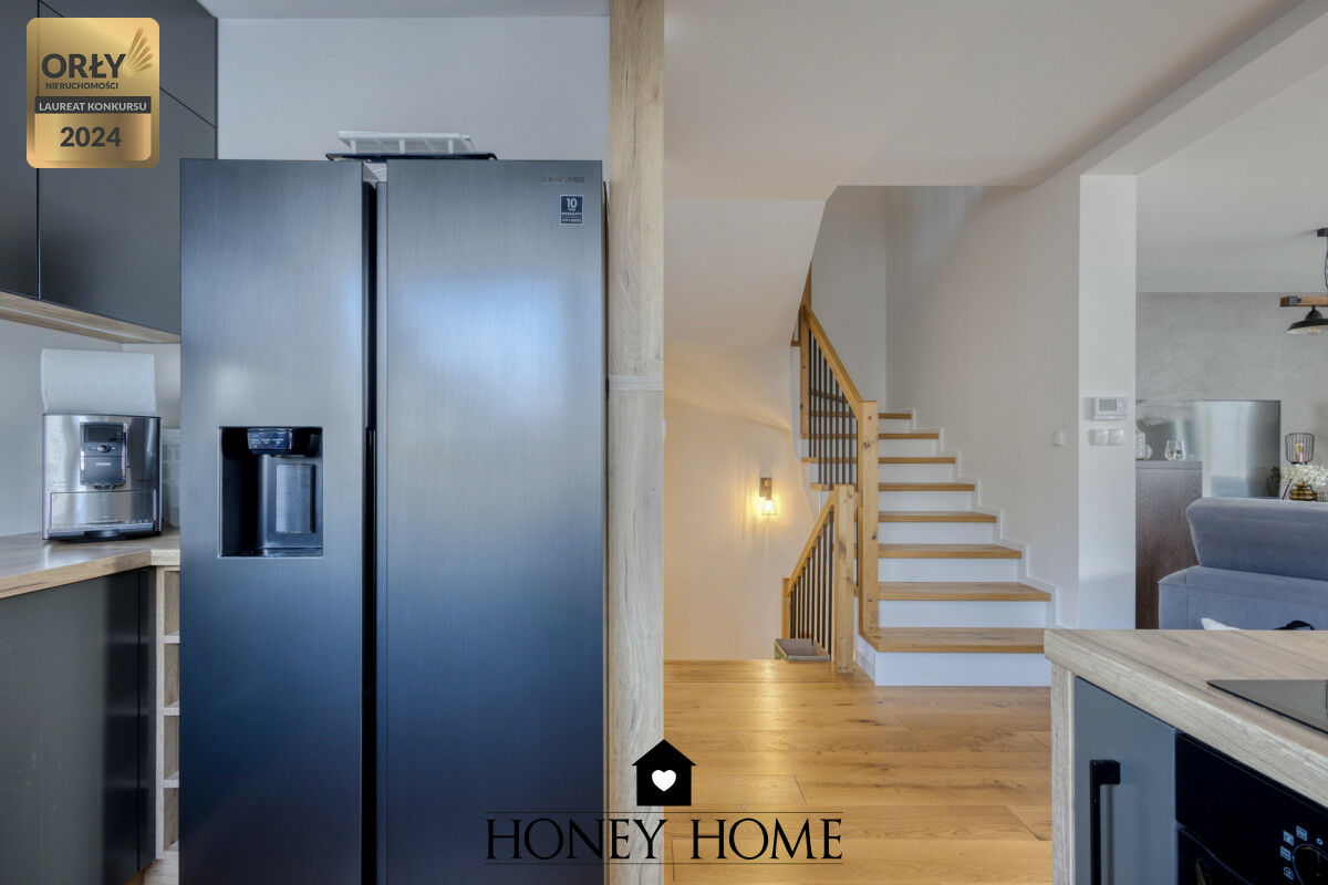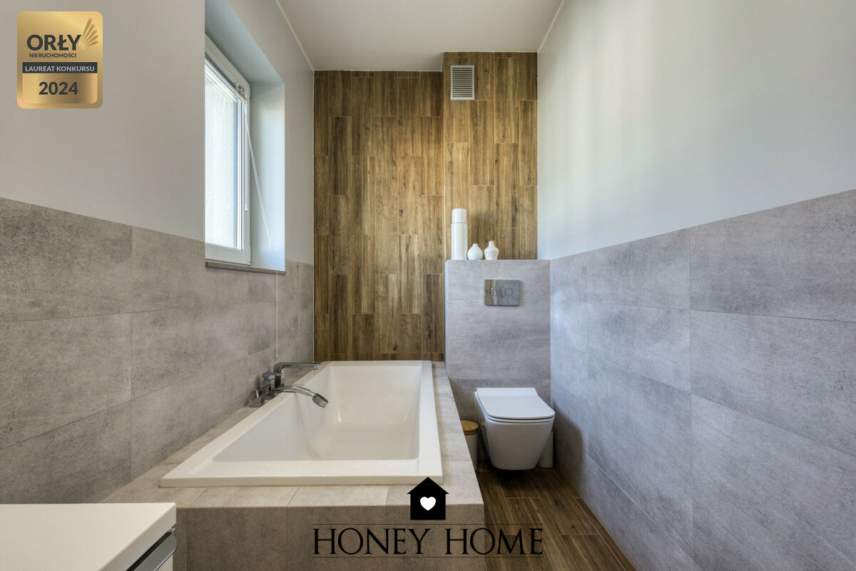 Dom został wykończony w wysokim standardzie, z dbałością o estetykę i funkcjonalność. Duża część dzienna zapewnia komfortową przestrzeń do życia oraz spotkań z rodziną i przyjaciółmi.